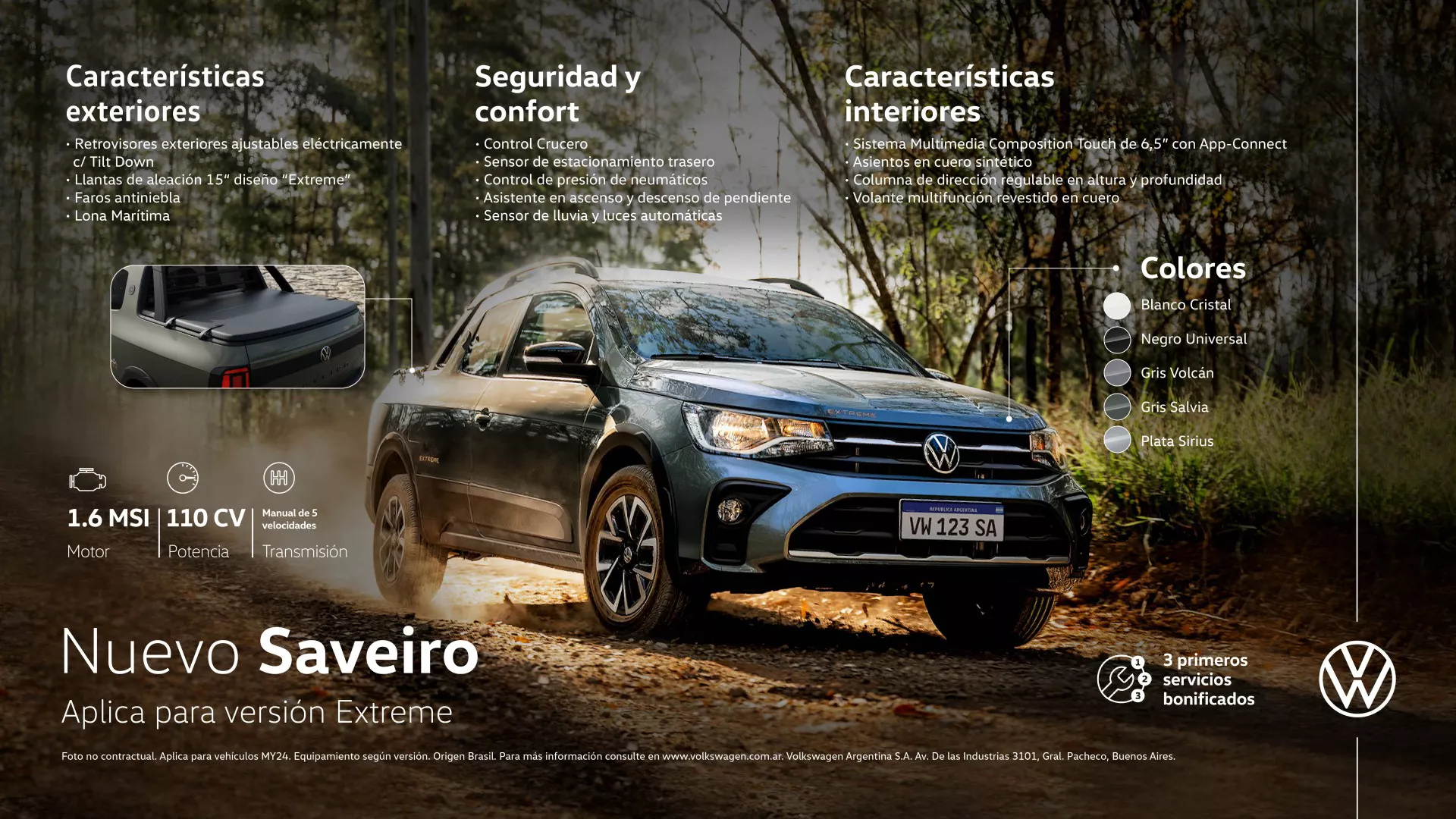 El Nuevo Saveiro llega renovado con un diseño robusto y moderno. Con sus versiones cabina simple o doble están listas para darte la bienvenida a la familia VW. Conocé todas sus variantes y elegí la que mejor se adapta a vos y tu negocio.